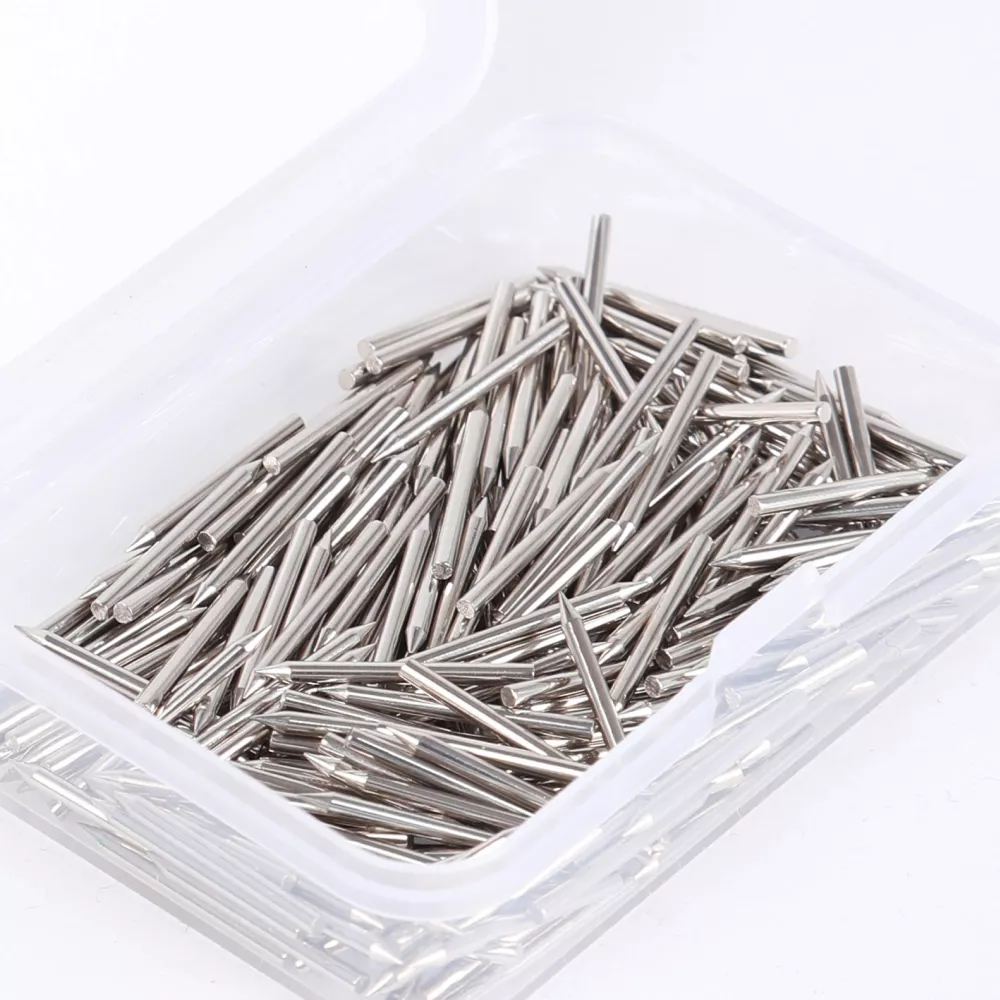 Изготовлены из прочной стали, каждый штифт имеет аккуратную фаску для облегчённой посадки в дерево или фетр. Диаметр 1.4 мм обеспечивает плотное соединение без люфта и гарантирует стабильную работу механизма.