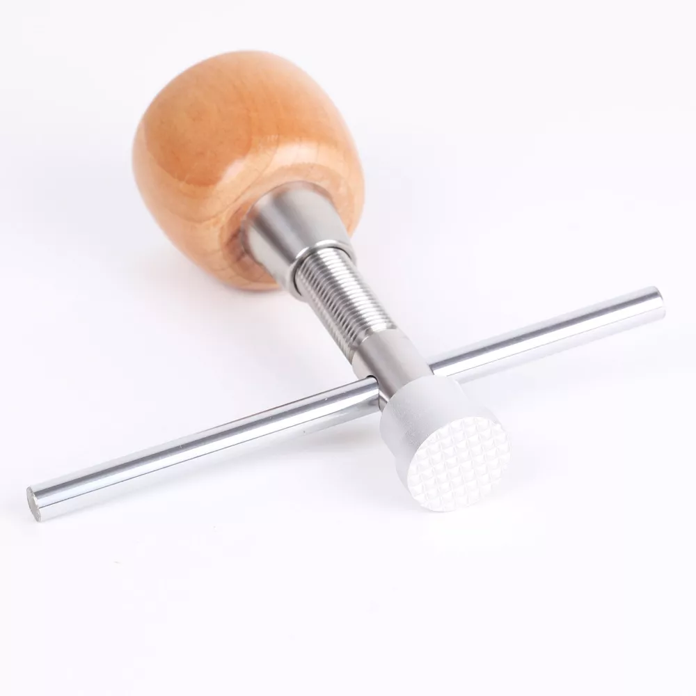 Домкратик для поддержки вирбельбанка — специализированное приспособление для безопасной опоры и точной фиксации вирбельбанка при ремонтных и реставрационных работах с роялями и пианино. Практически необходим, если меняются все колки - при забивании новых колков, особенно на старинном инструменте, довольно часто вирбельбанк расслаивается, или вообще ломается на части, если снизу нет упора.