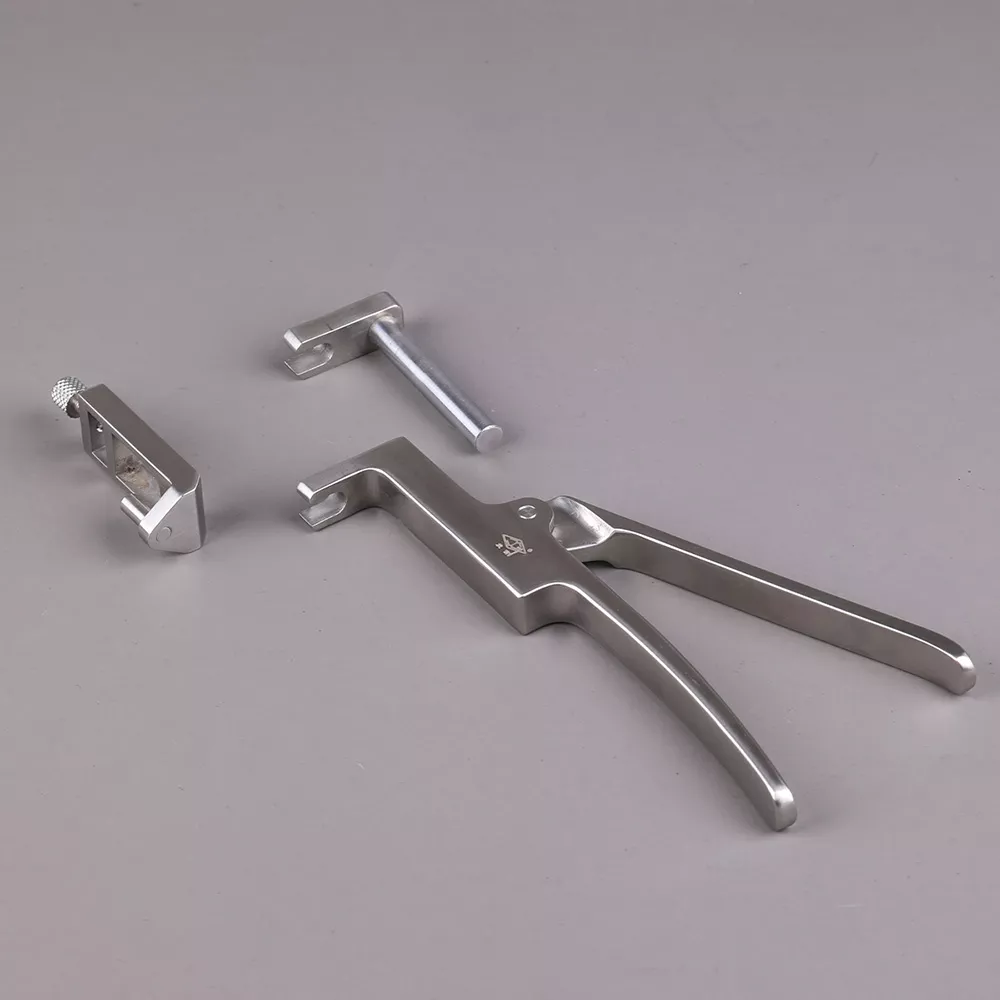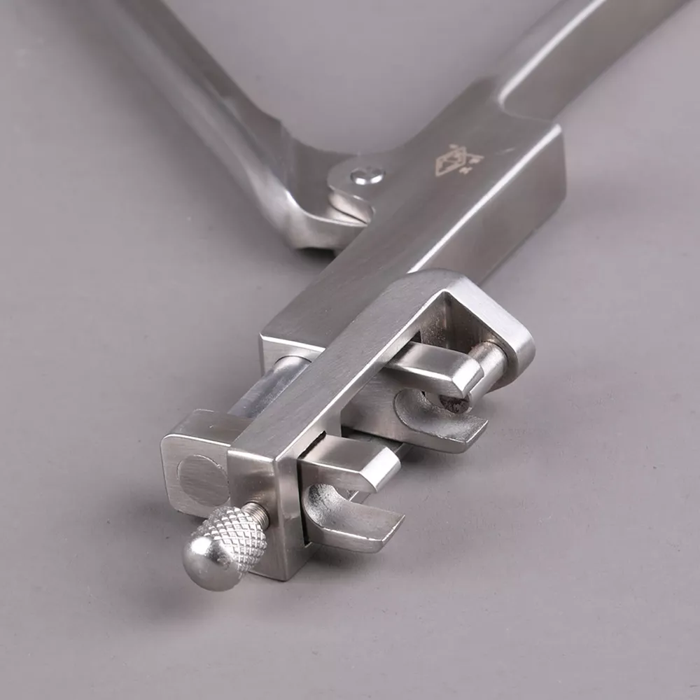 Конструкция съёмника работает по принципу «захват + упор»: специальные крючкообразные губки удерживают головку молоточка, а упорный элемент давит в торец шенка, позволяя снять молоточек контролируемо, без рывков и перекосов. Это снижает риск сколов, трещин и повреждения шенка.