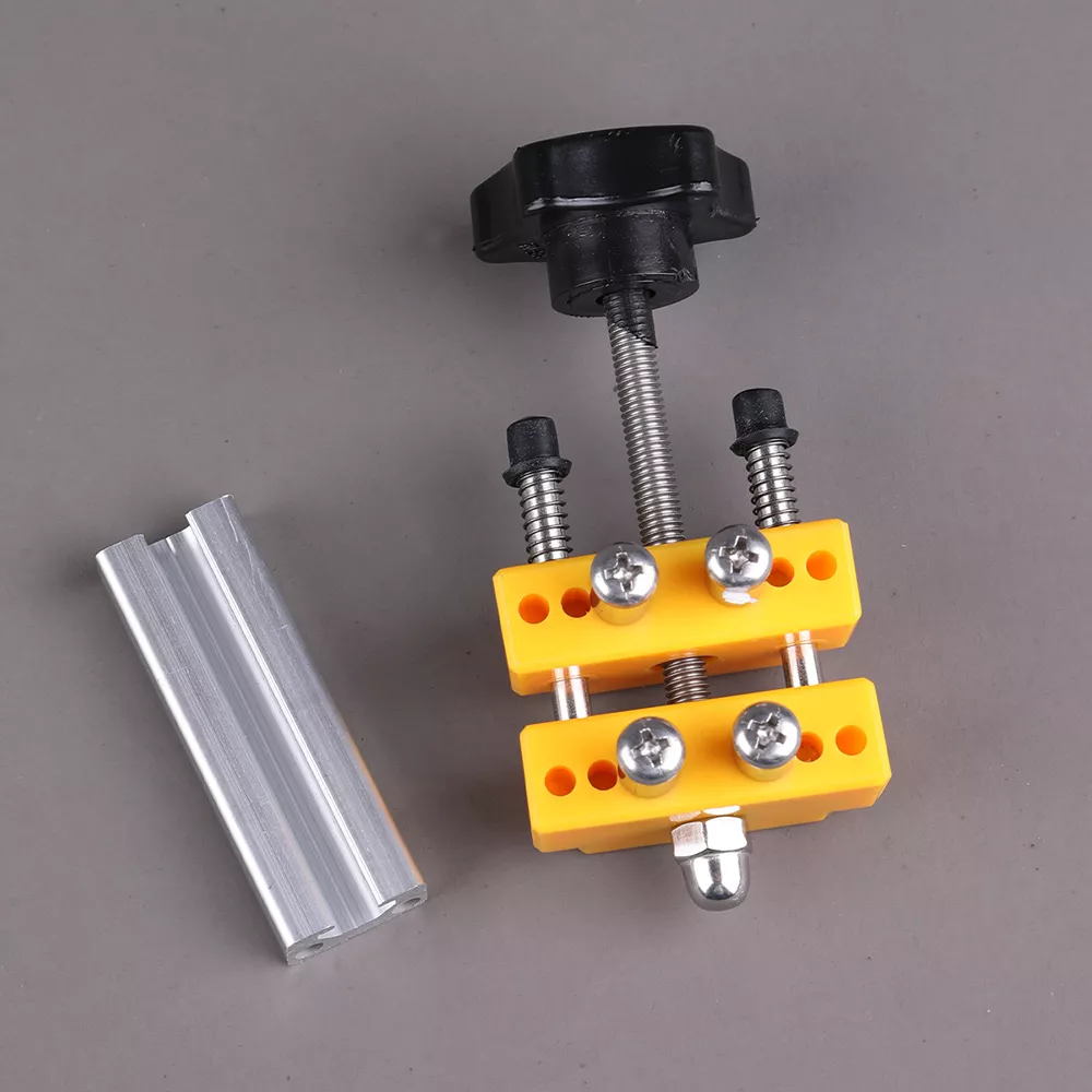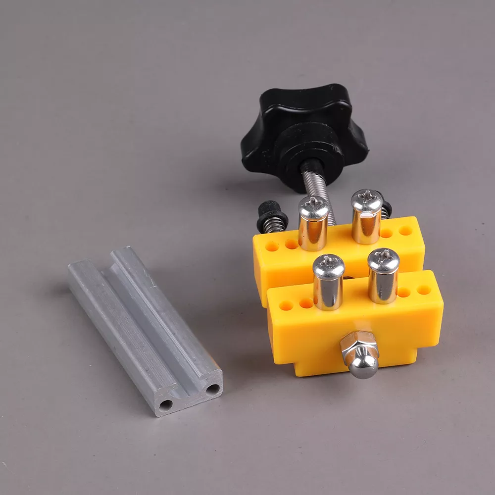 - Отдельная металлическая упорная планка (пластина) — служит упором/разделителем и защищает деталь при работе.