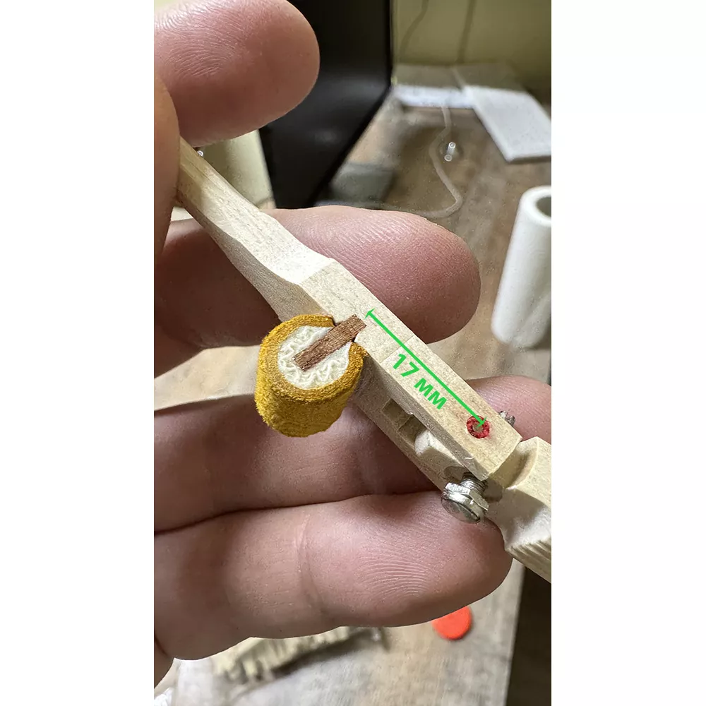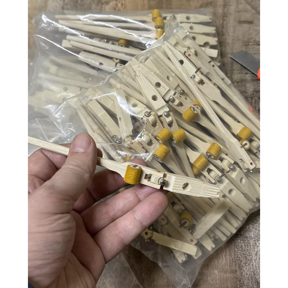 - Барабанчик (ролик, knuckle) из желтой кожи на деревянном сердечнике – обеспечивает мягкий и предсказуемый контакт с толкателем;