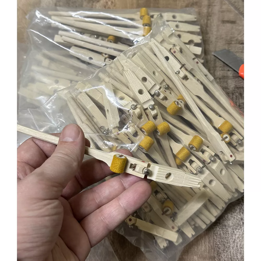 Рояльные шэнки для механики с двойной репетицией – гаммерштиль с барабанчиком (роликом, knuckle) и капсулем (фланцем) в сборе. Полностью новые фабричные заготовки, готовые под установку голов молотков. Фланец плоский Renner - универсальный, подходит для большинства роялей с механикой типа Renner - от Красного Октября до Yamaha/Bechstein и прочие, кроме Steinway & Sons