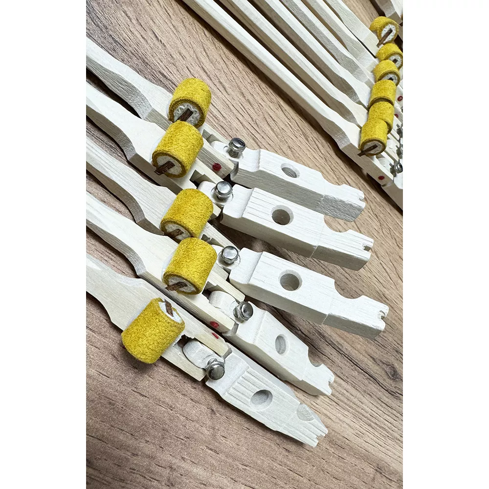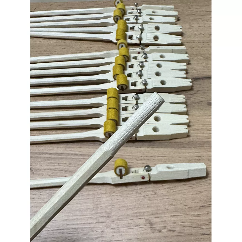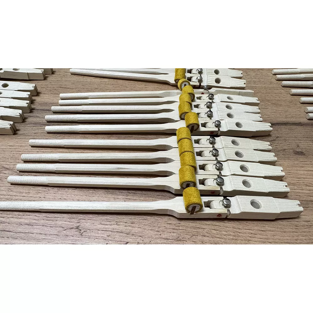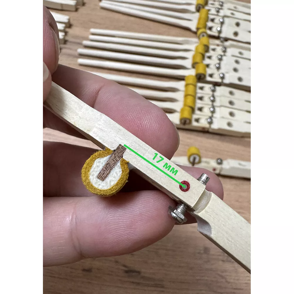 Важно: перед установкой рекомендуется сравнить длину, диаметр и расположение отверстий с родными гаммерштилями конкретного рояля и при необходимости выполнить подгонку. Головки молотков в комплект не входят.