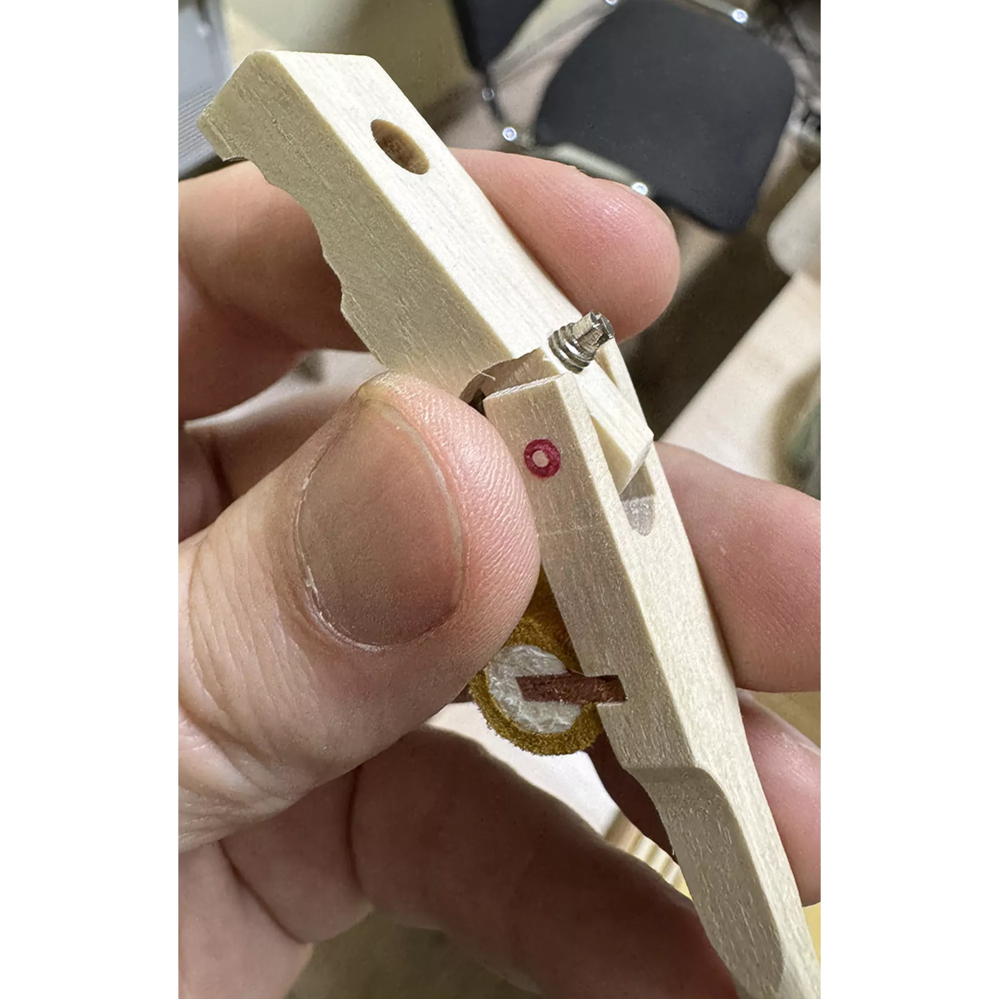 - характерная проточка на капсуле под выступ на рейке Steinway – фиксирует узел от смещения влево–вправо и помогает сохранить точную центровку молотка относительно струн.