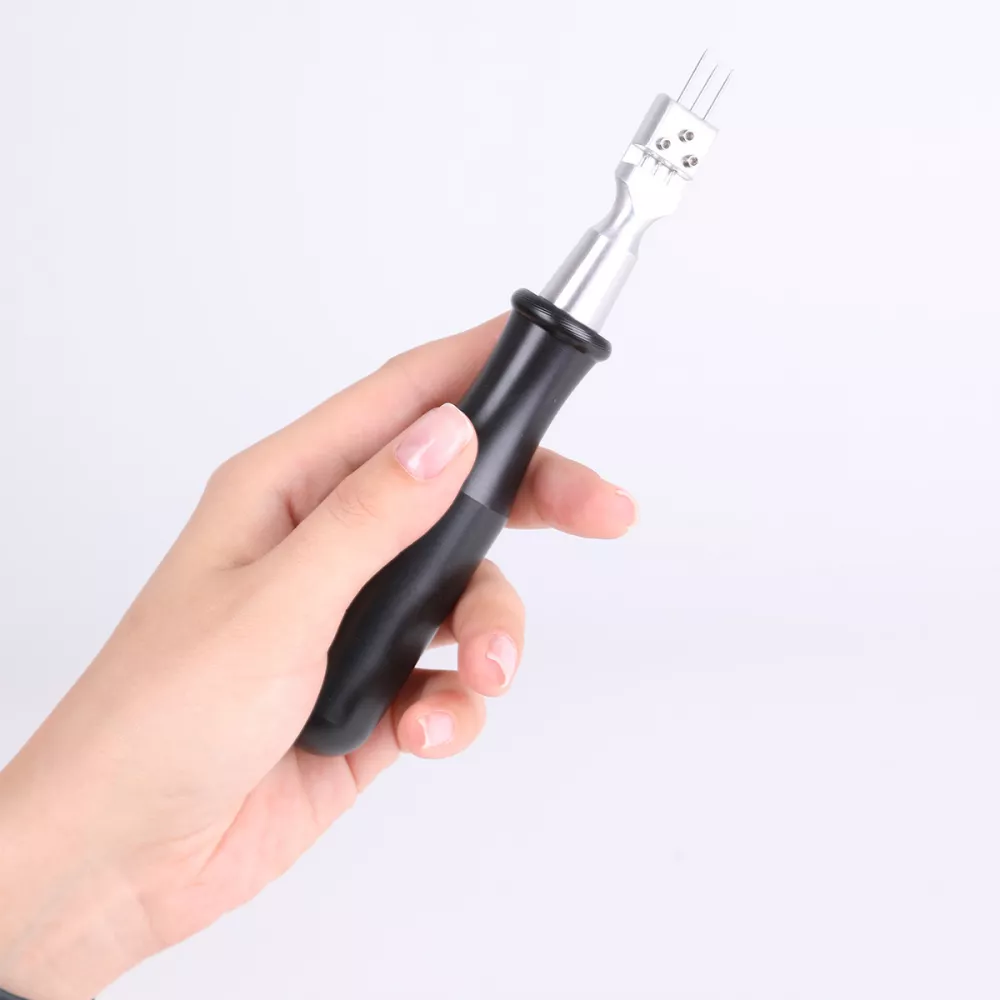 - Прочная металлическая головка с тремя фиксированными иглами;