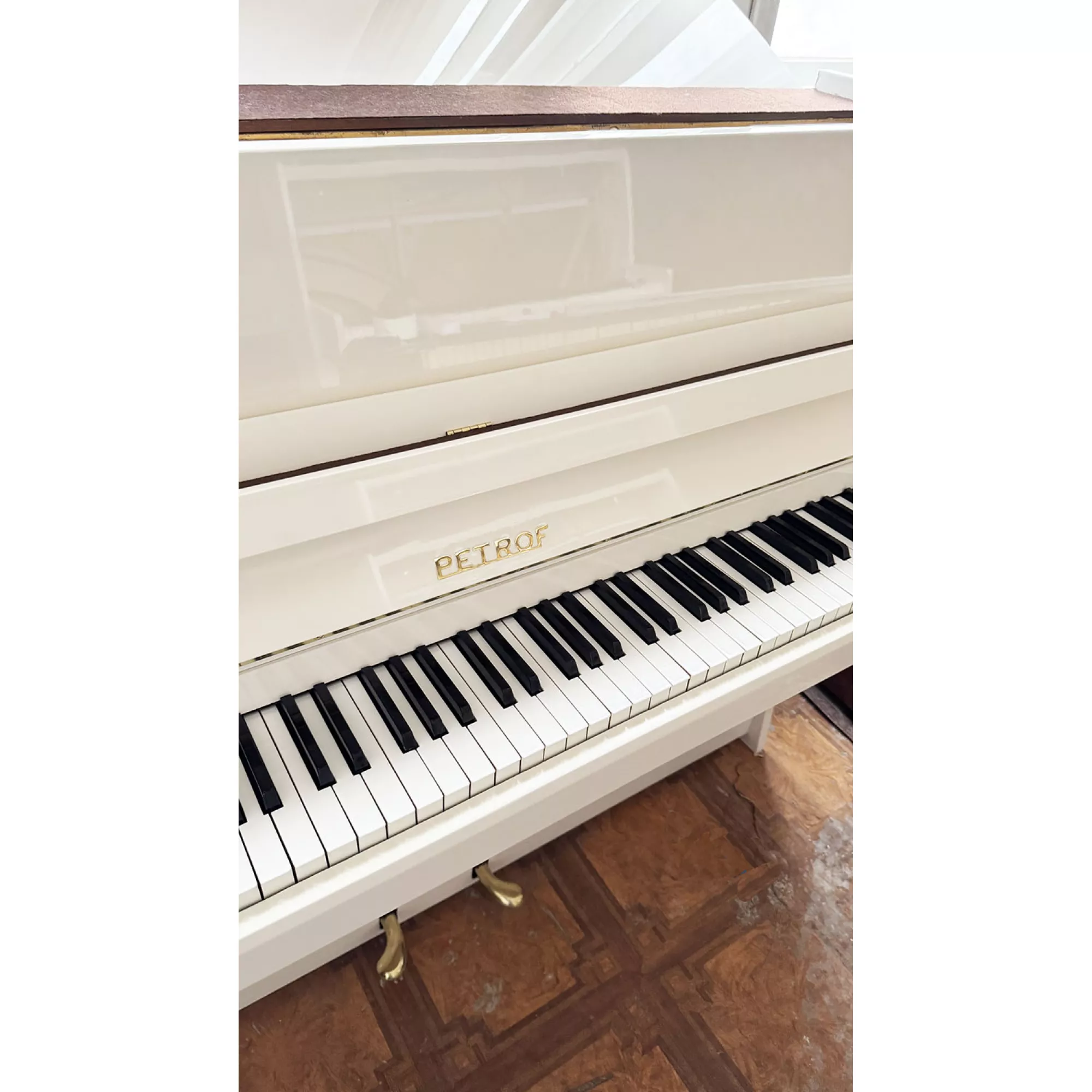 Белое пианино Petrof высотой 112см — это гармония изысканного дизайна и профессионального звучания. Модель идеально подходит для современных интерьеров, сочетая лаконичность белого глянцевого корпуса с традициями чешского фортепианного искусства.