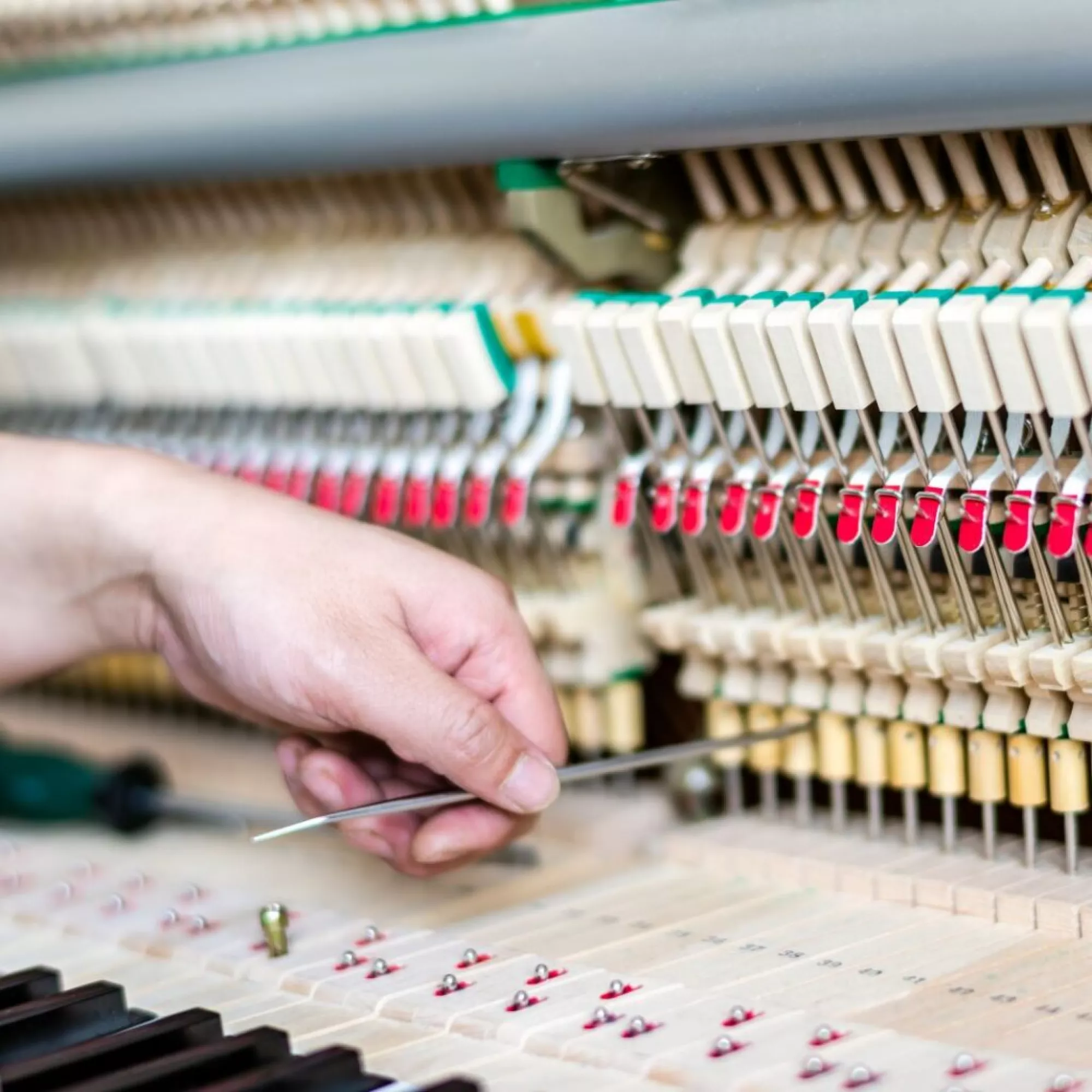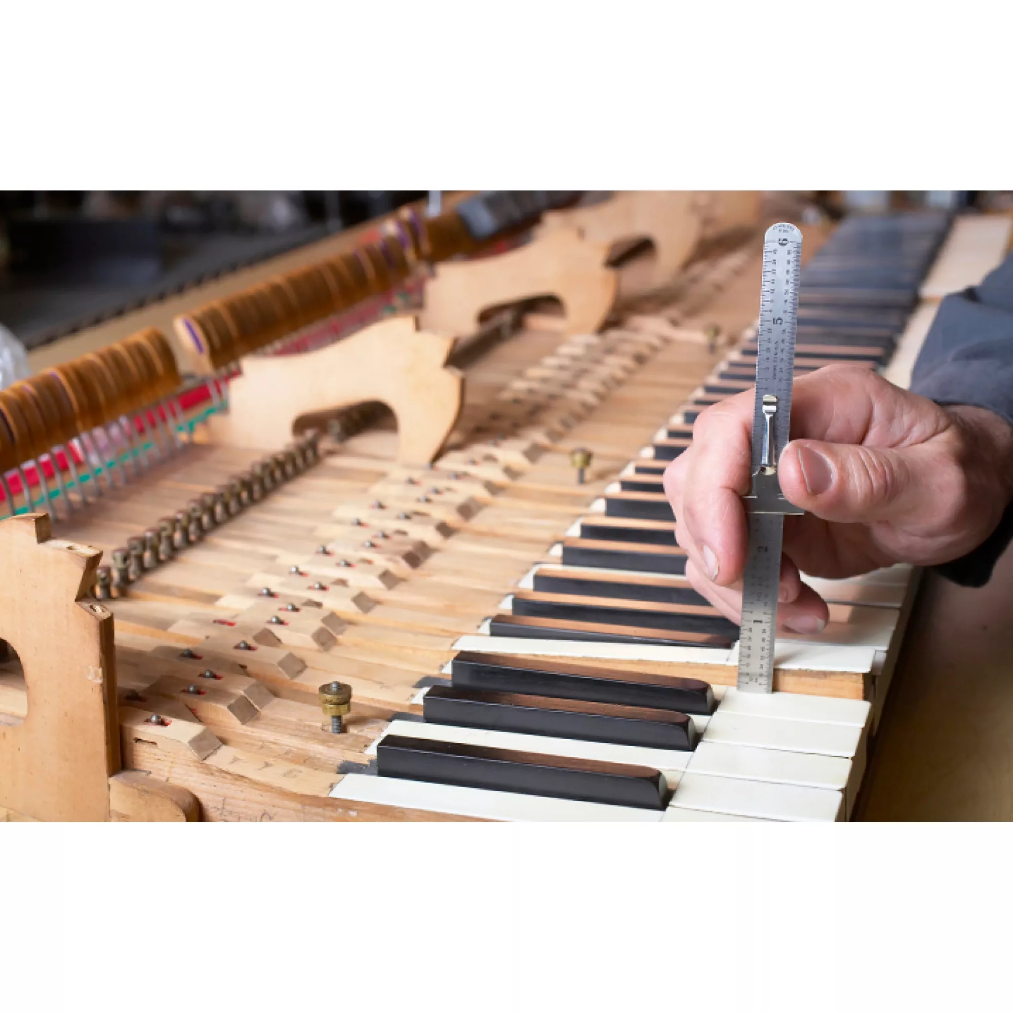 Это тонкая работа мастера с клавиатурой и молоточковой механикой: каждый рычаг, пружина и демпфер должны срабатывать в точный момент и с одинаковой силой. Правильная регулировка обеспечивает лёгкость игры, ровный звук и быстрый отклик.
