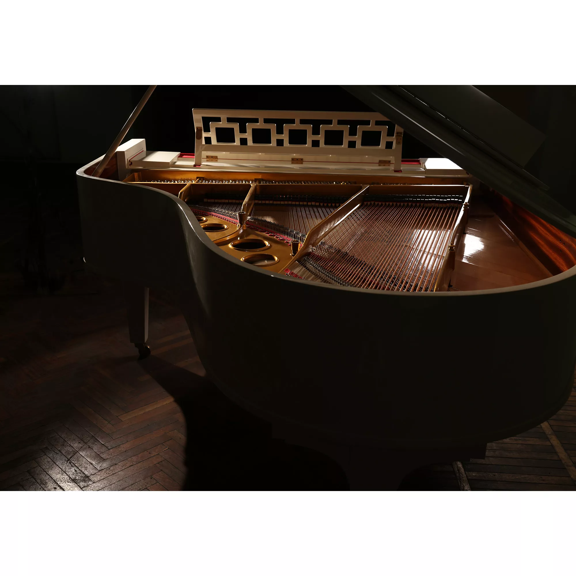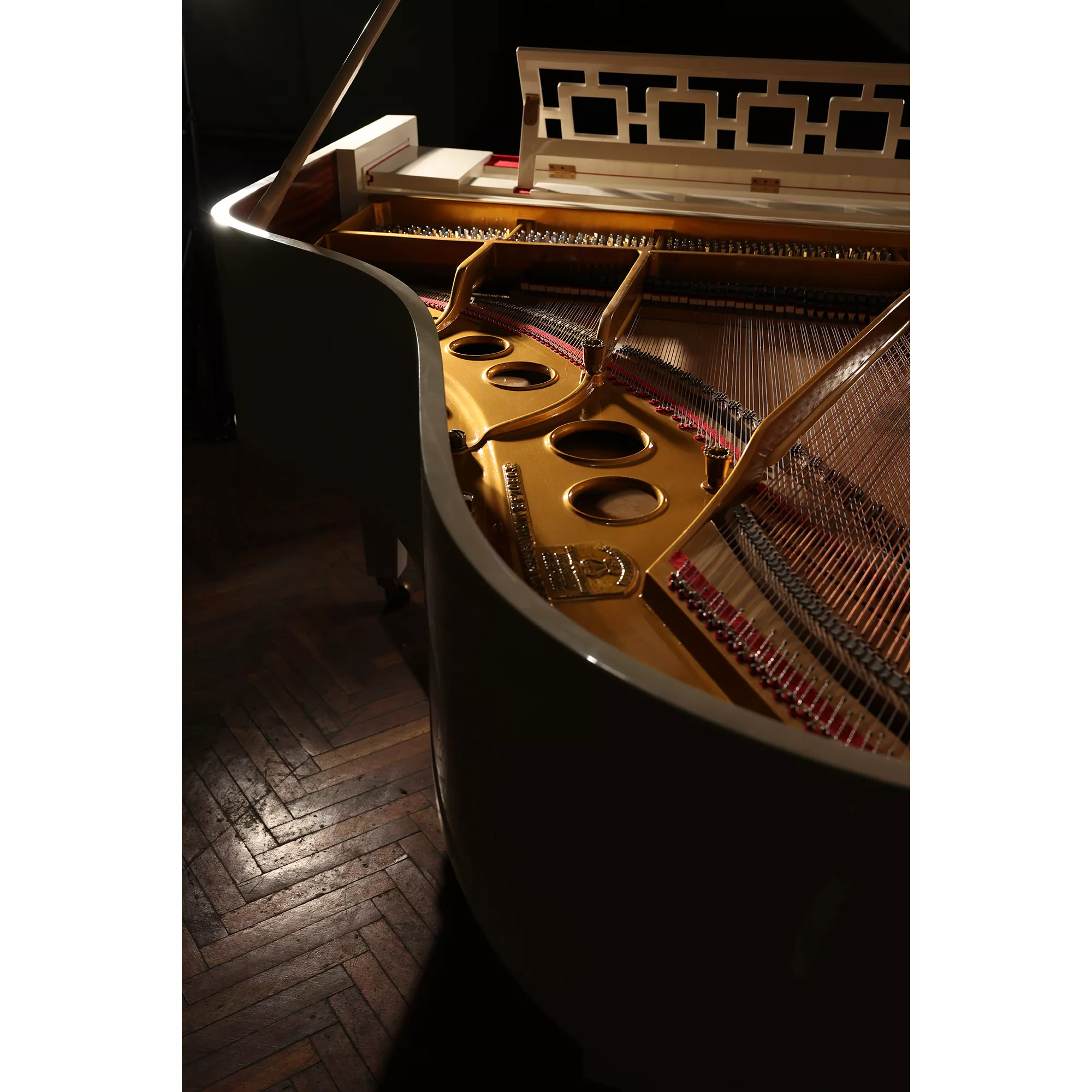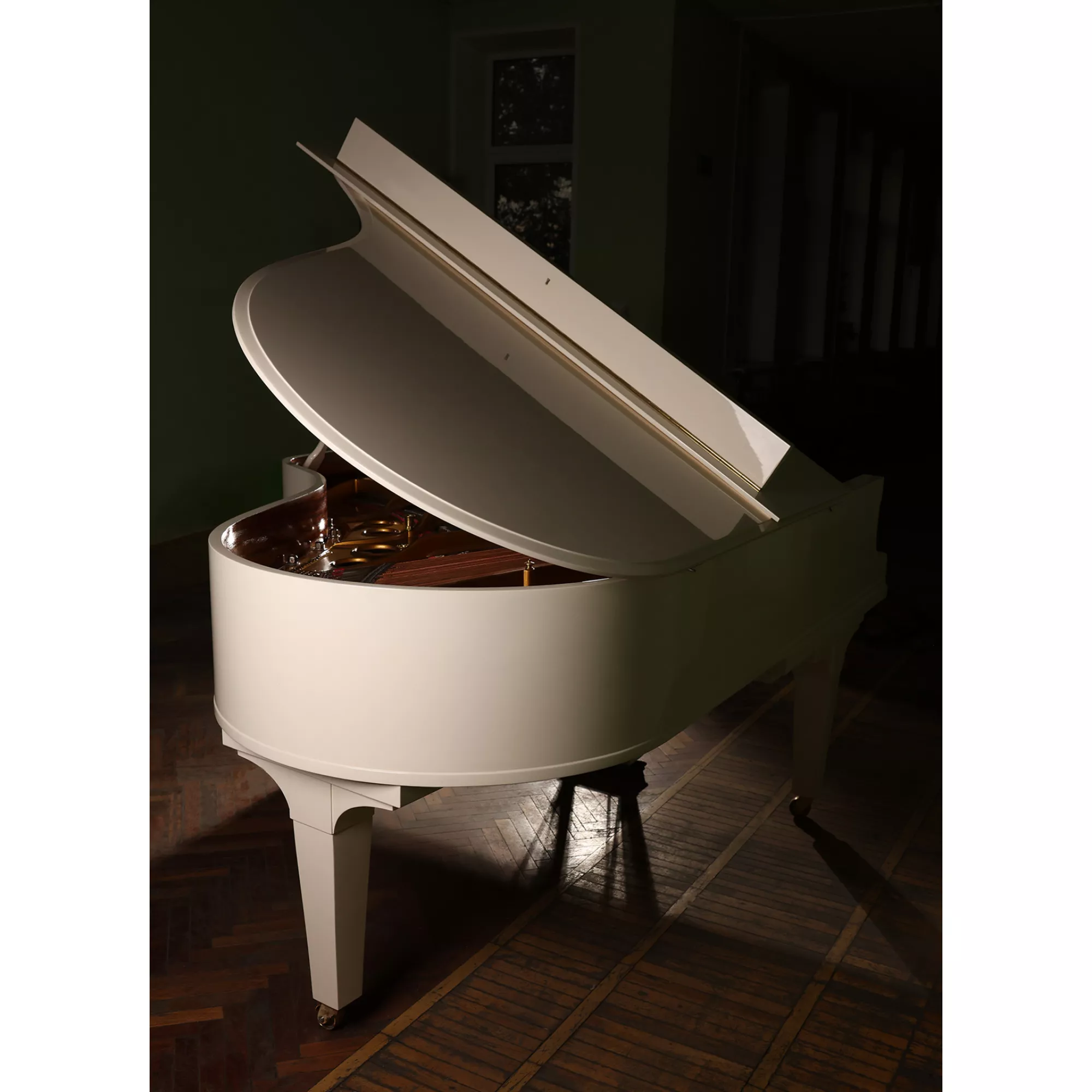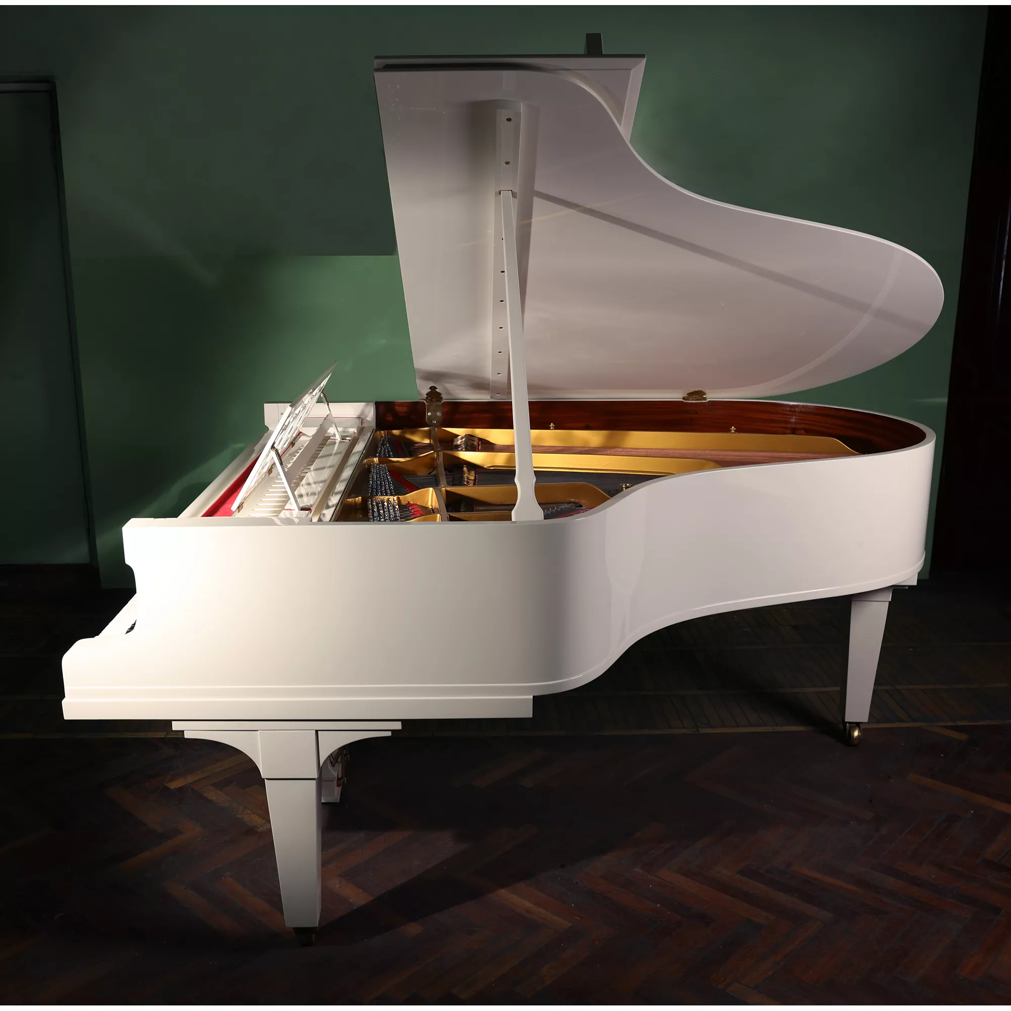 - Корпус по габаритам сопоставим с моделью B (211 см), дека ближе к модели O (180 см) - поскольку часть корпуса занимала пианола.