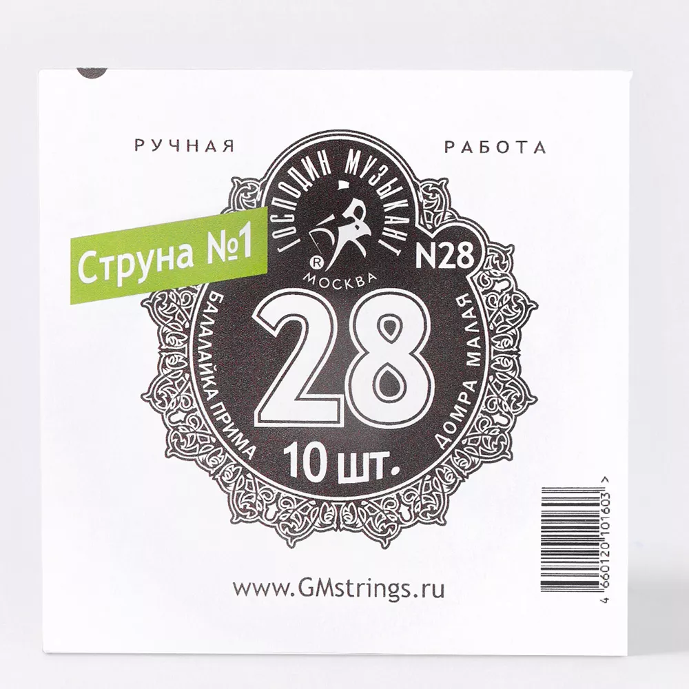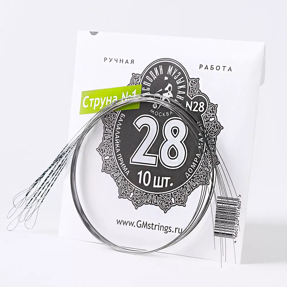 Струна № 1, 0,28 мм (балалайка прима ля, домра малая ре) Господин Музыкант N28, 10 струн в упаковке