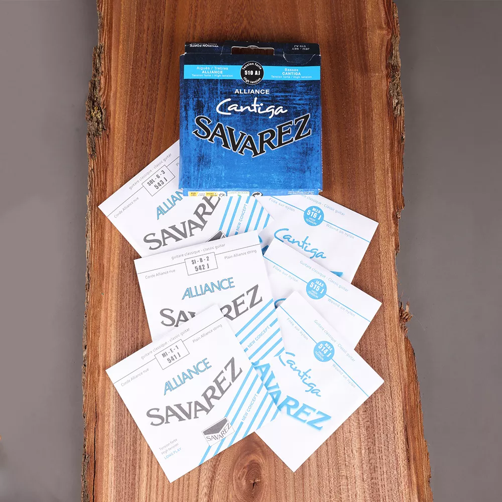 Savarez Alliance Cantiga 510AJ — комплект струн для классической гитары с высоким натяжением (High Tension). В наборе сочетаются верхние струны Alliance (флюорокарбон) и басы Cantiga, что даёт быстрый отклик, читаемую атаку и уверенную проекцию в зале.