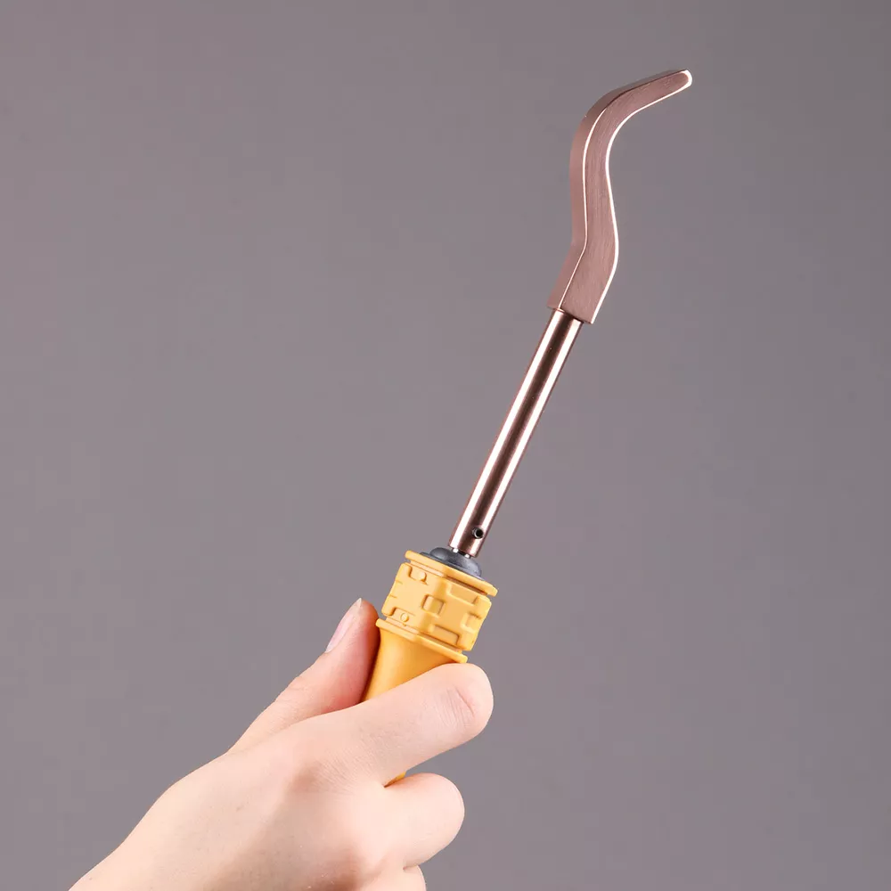 - изогнутая форма жала облегчает прогрев молоточка и увеличивает площадь прогрева;