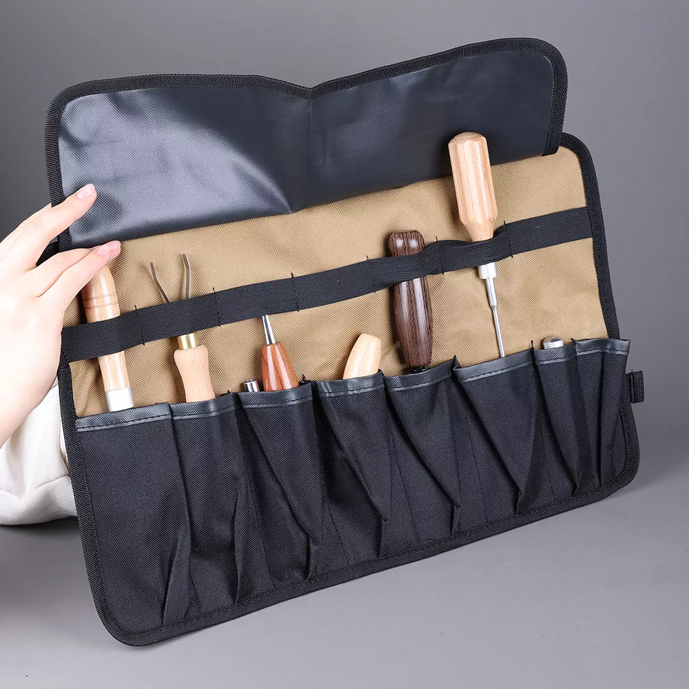 В отличие от обычного ящика или пакета, сумка-рулон помогает держать инструмент в порядке: каждый предмет лежит отдельно, меньше цепляется друг за друга, а нужный инструмент проще быстро найти во время работы. При этом, благодаря своей форме, занимает мало места (можно положить в рюкзак).